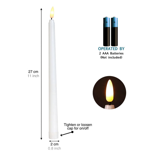11" Taper Flameless LED Faux Candle Lights with 3D Wick, Battery Operated Flickering Tall Candlesticks for Christmas Home Wedding Decor