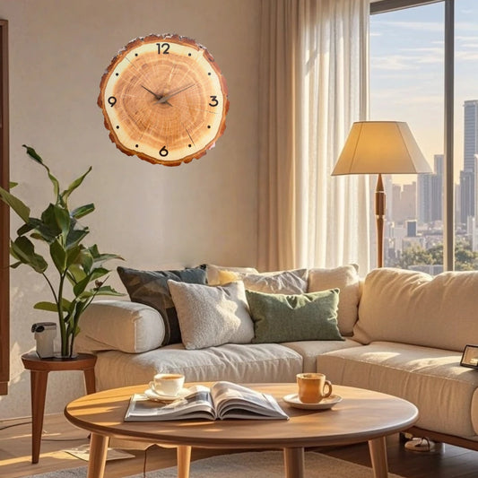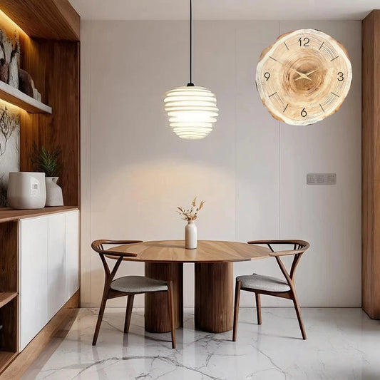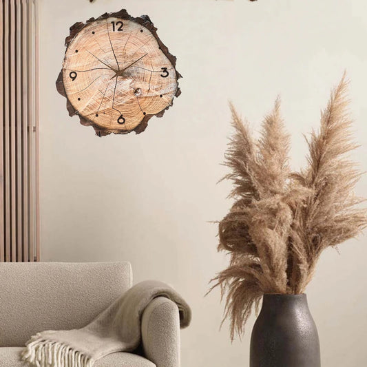 12 inch Wooden Ring Veneer Wall Clock Flat Wood Cross Section Texture Pattern Solid Wood Pointer Design Wall Clock Silent Clock