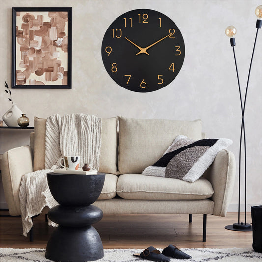 12 Inch Modern Wall Clock Battery Operated Silent Non Ticking Clock Decorative for Living Room Office Home School(Black)