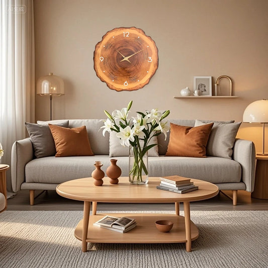 12 inch Creative Wall Clock Silent Annual Ring Shaped Wall Clock Fashion Art Pendulum Desktop Clock Living Room Home Decoration