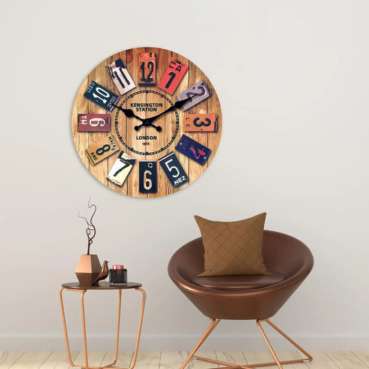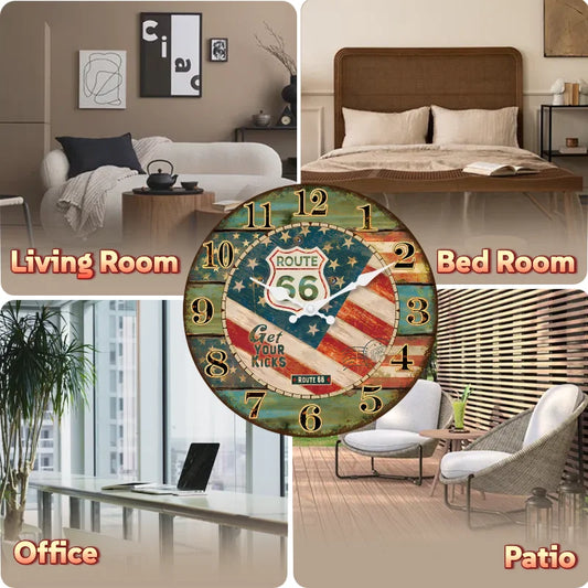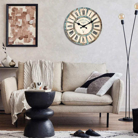 12 Inch Retro Wooden Wall Clock Farmhouse Silent Non-Ticking MDF Battery Operated Quartz Clock Rustic Art Decor for Romm Kitchen