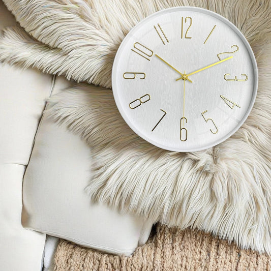 12 Inch Wall Clock Silent Non-Ticking Modern Style Wooden Wall Clocks Decorative for Office Home Bedroom School (White Color)