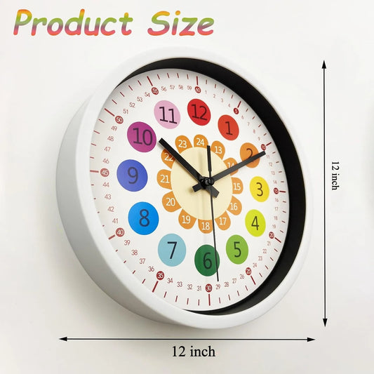 12 Inch Wall Clock Silent Non-Ticking Battery Operated Kids Colorful Childrens Learning Clock for Kids Room Playroom Classroom