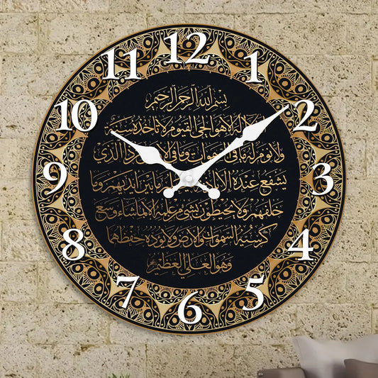 12 Inch Retro Art Islamic Calligraphy Scripture Wall Clock Living Room Bedroom Kitchen Home Decoration Silent Quartz Holiday