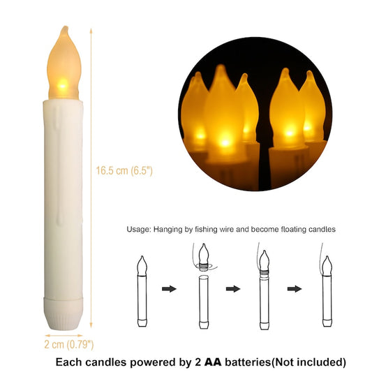 12PCS Flameless LED Taper Candles Lights, Battery Operated Candlesticks with Warm Yellow Flickering Flame, 6.5 Inches