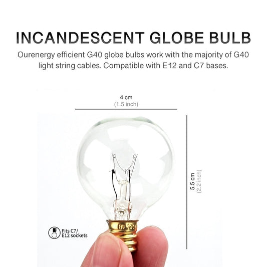 10-25 pcs Clear G40 Globe Bulbs With Candelabra Screw Base, E12 Candelabra Base Light Glass Bulbs, Warm White