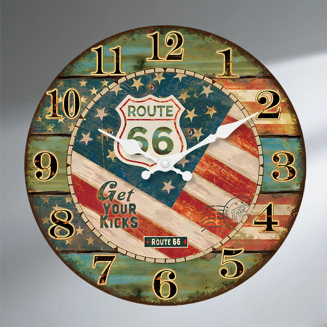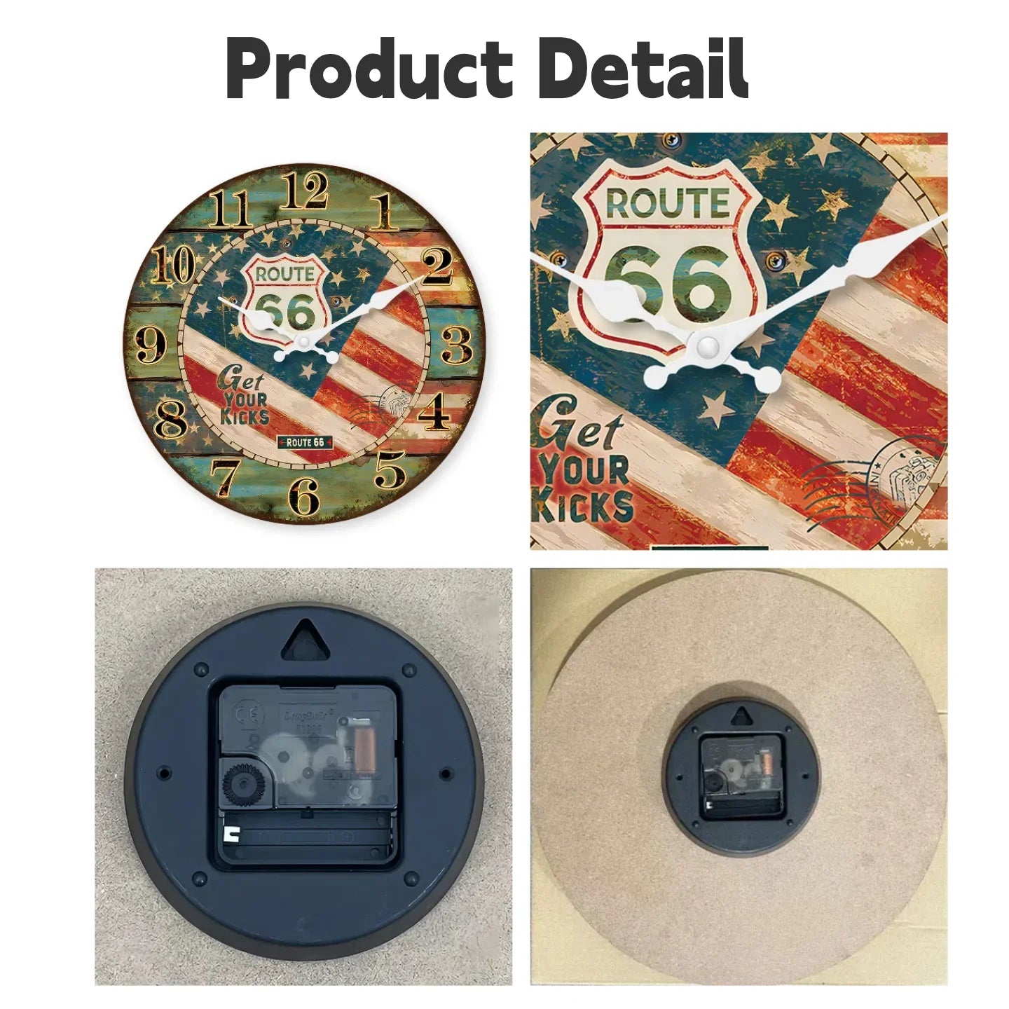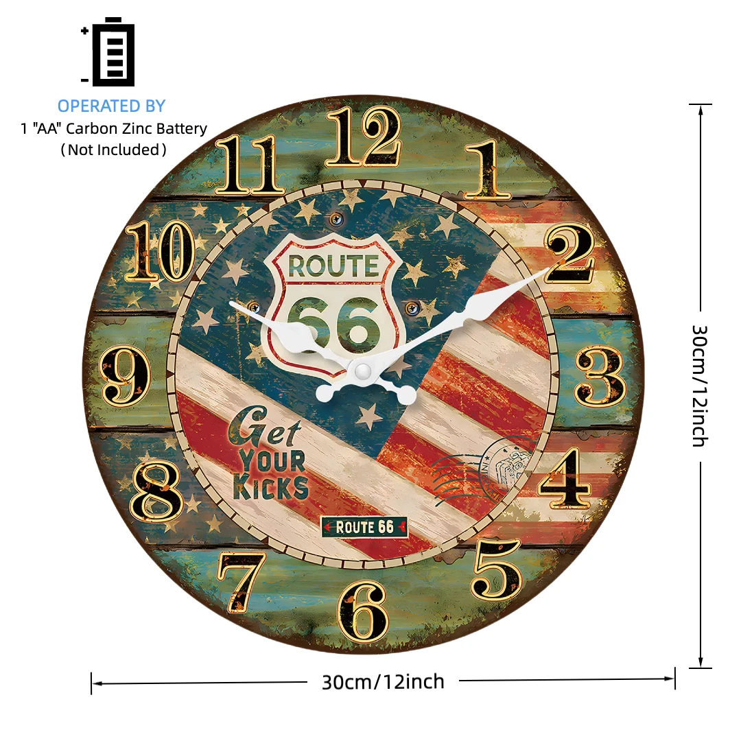 12 Inch Retro Wooden Wall Clock Farmhouse Silent Non-Ticking MDF Battery Operated Quartz Clock Rustic Art Decor for Romm Kitchen