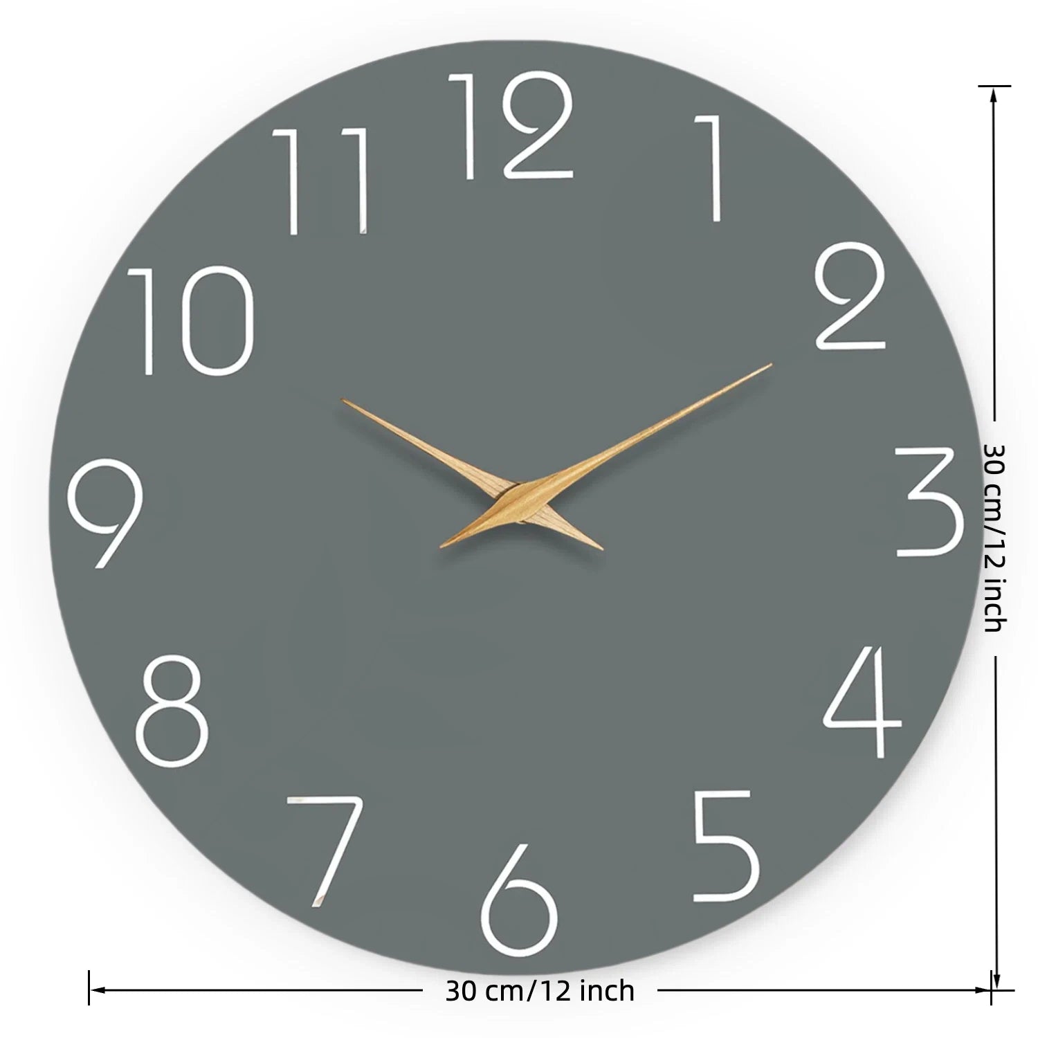12 Inch Wall Clock Gray Silent Non-Ticking Decorative Battery Operated Wall Clocks for Bedroom Kitchen Home Office School Hotel