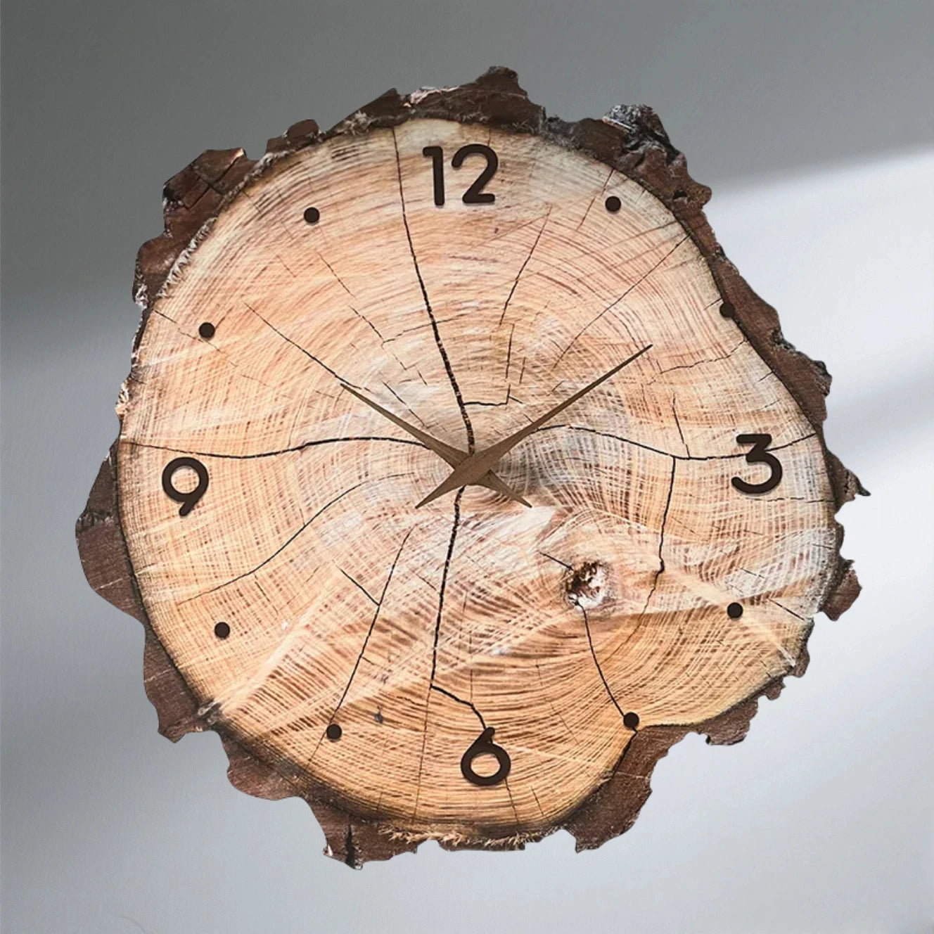12 inch Wooden Ring Veneer Wall Clock Flat Wood Cross Section Texture Pattern Solid Wood Pointer Design Wall Clock Silent Clock