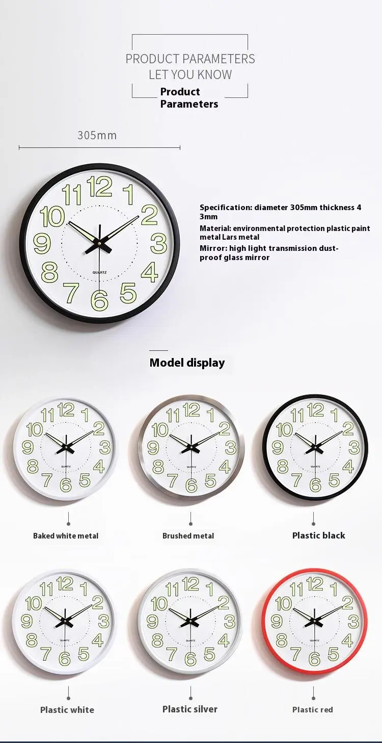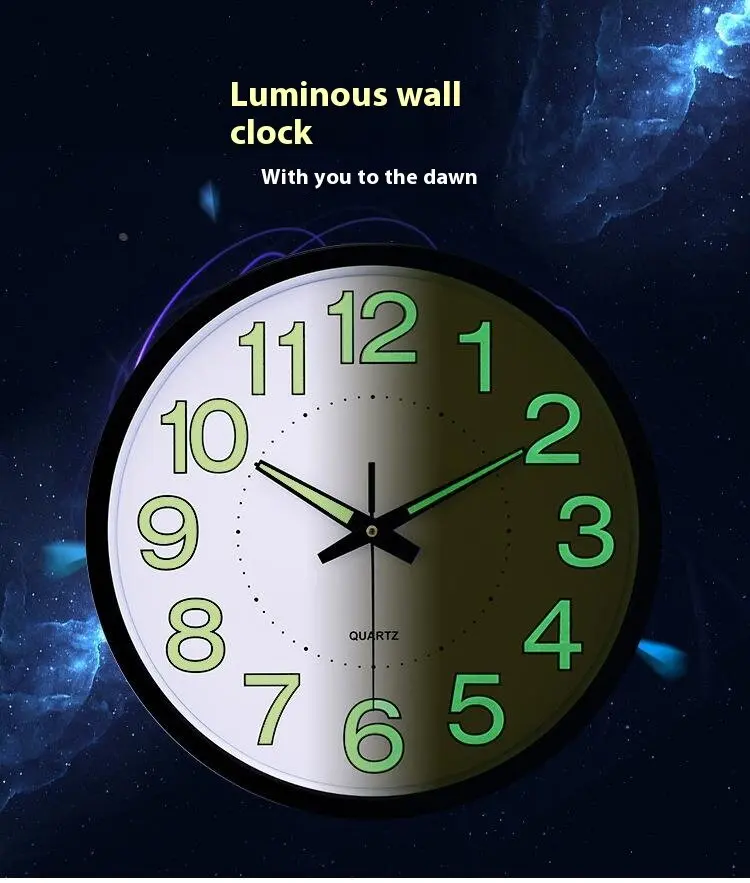 4.Elegant Design Meets Versatile Decor: With its sleek and simple design, our luminous wall clock is more than just a timepiece; it's an addition to your decor that fits seamlessly into any room. Whether it's for the bedroom, living room, study, office, or kids' room, this clock is designed to complement your interior design while being functional.