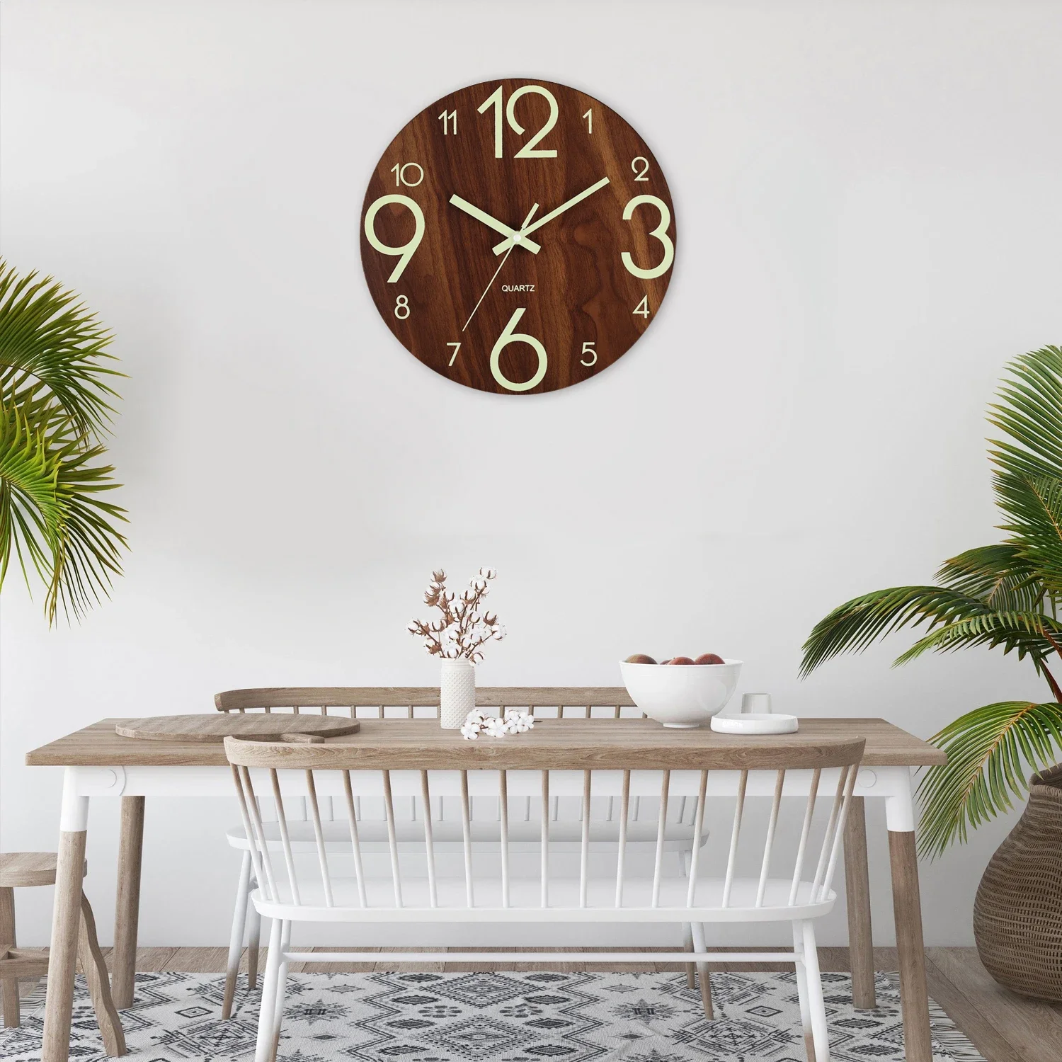 Wooden Wall Clock Luminous Number Hanging Clocks Quiet Dark Glowing Wall Clocks Modern Watches Decoration For Living Room