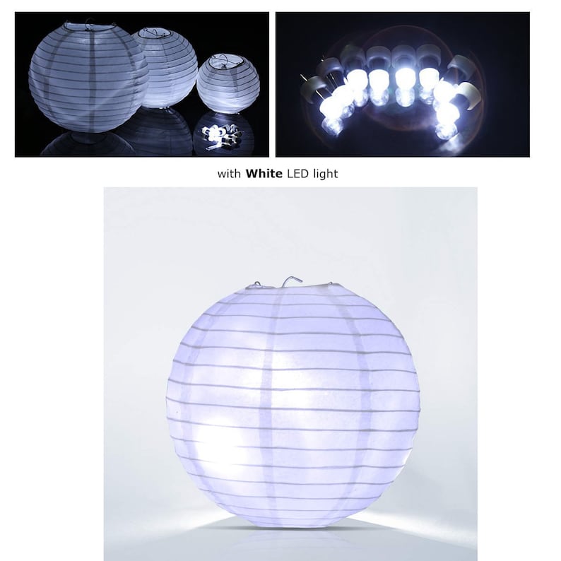 70 Round Chinese White Paper Lantern LED Light Set Kit 10x10" 10x12" 20x14" 20x16" 10x20" DIY KITS for Wedding Party Event Sky Decoration
