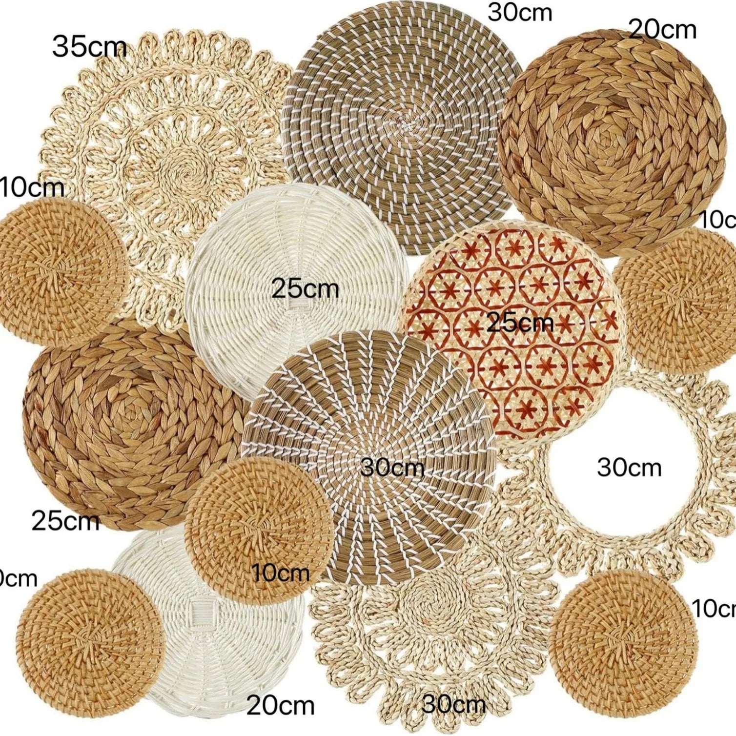Wide Range of Applications: boho basket wall decor set as placemats, or as decorative baskets to store toys and accessories, the rustic basket wall art is suitable for many occasions, such as hotels, restaurants, living rooms, bedrooms, schools, stores, offices, dorms, shops, spring, summer and more, bringing you an elegant and classic feeling