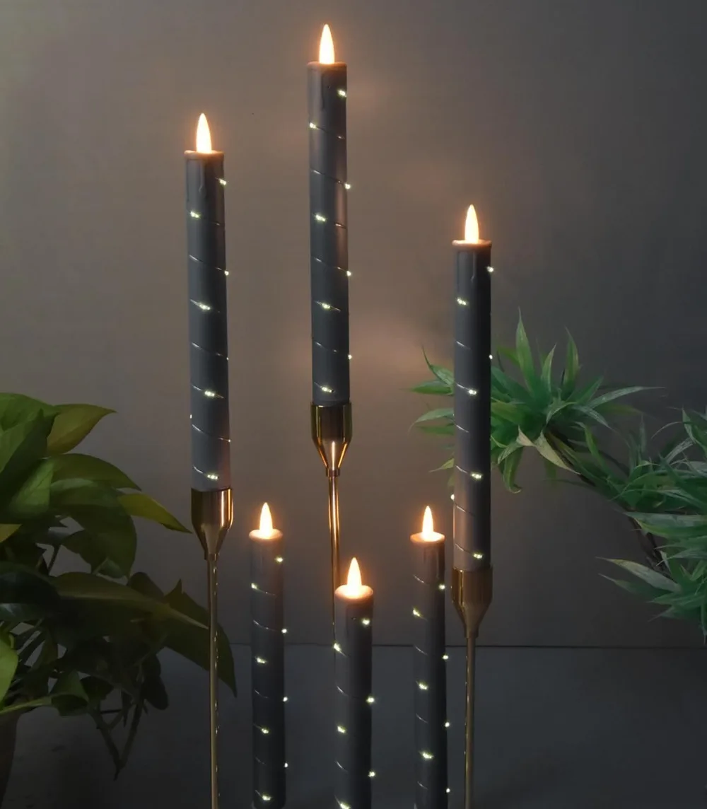 **Magical String Light Accent:** Each flickering candle is beautifully encircled by delicate LED string lights, creating an ethereal and romantic ambiance.