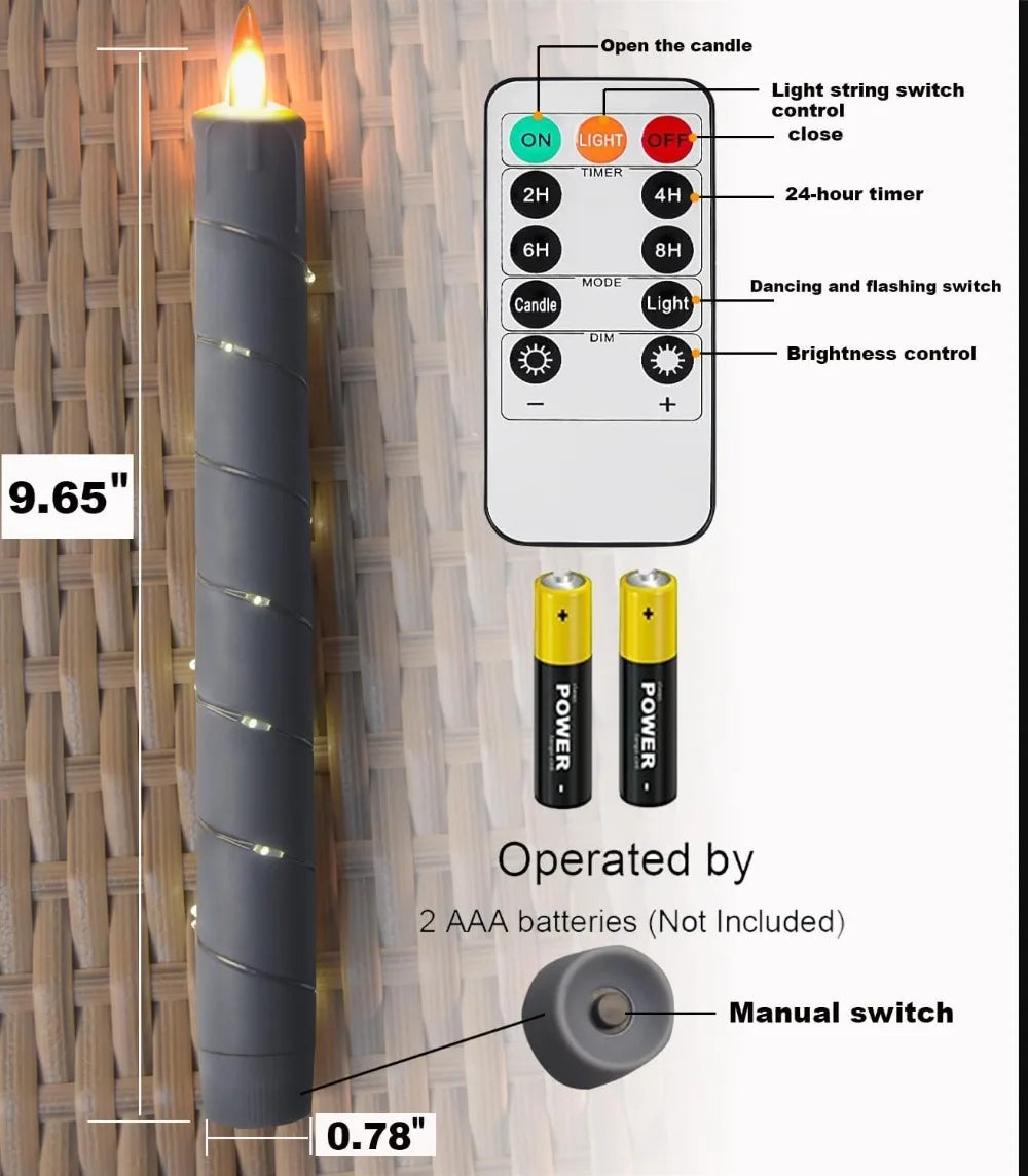 - **Package 2 choose included: - **6 x Taper Candles with 1 x 11-Key Remote with 6 non-slip candle holders