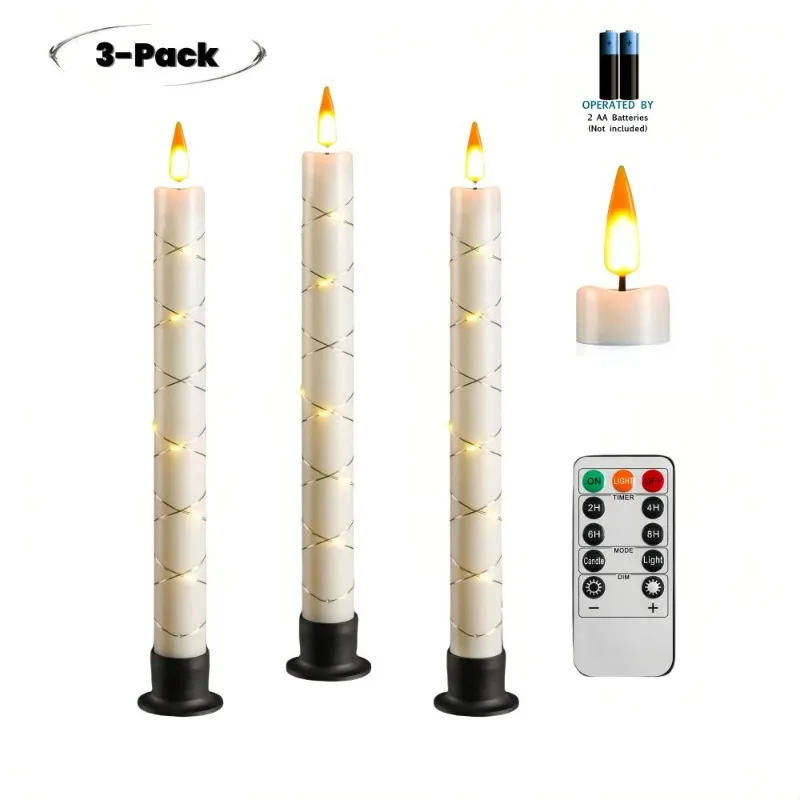 - **3 x Taper Candles with 1 x 11-Key Remote with 3 non-slip candle holders